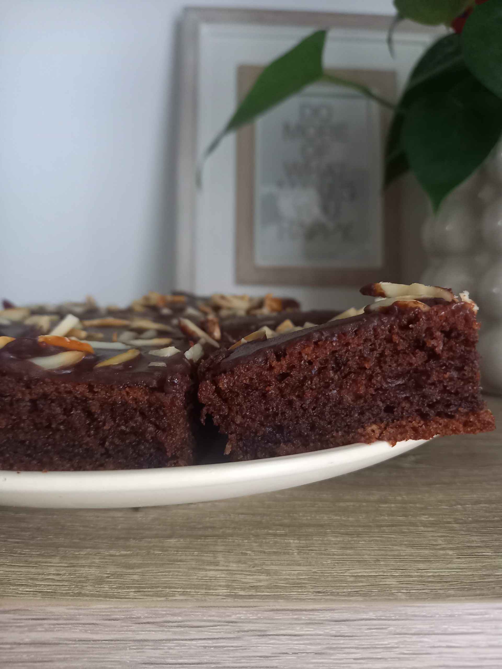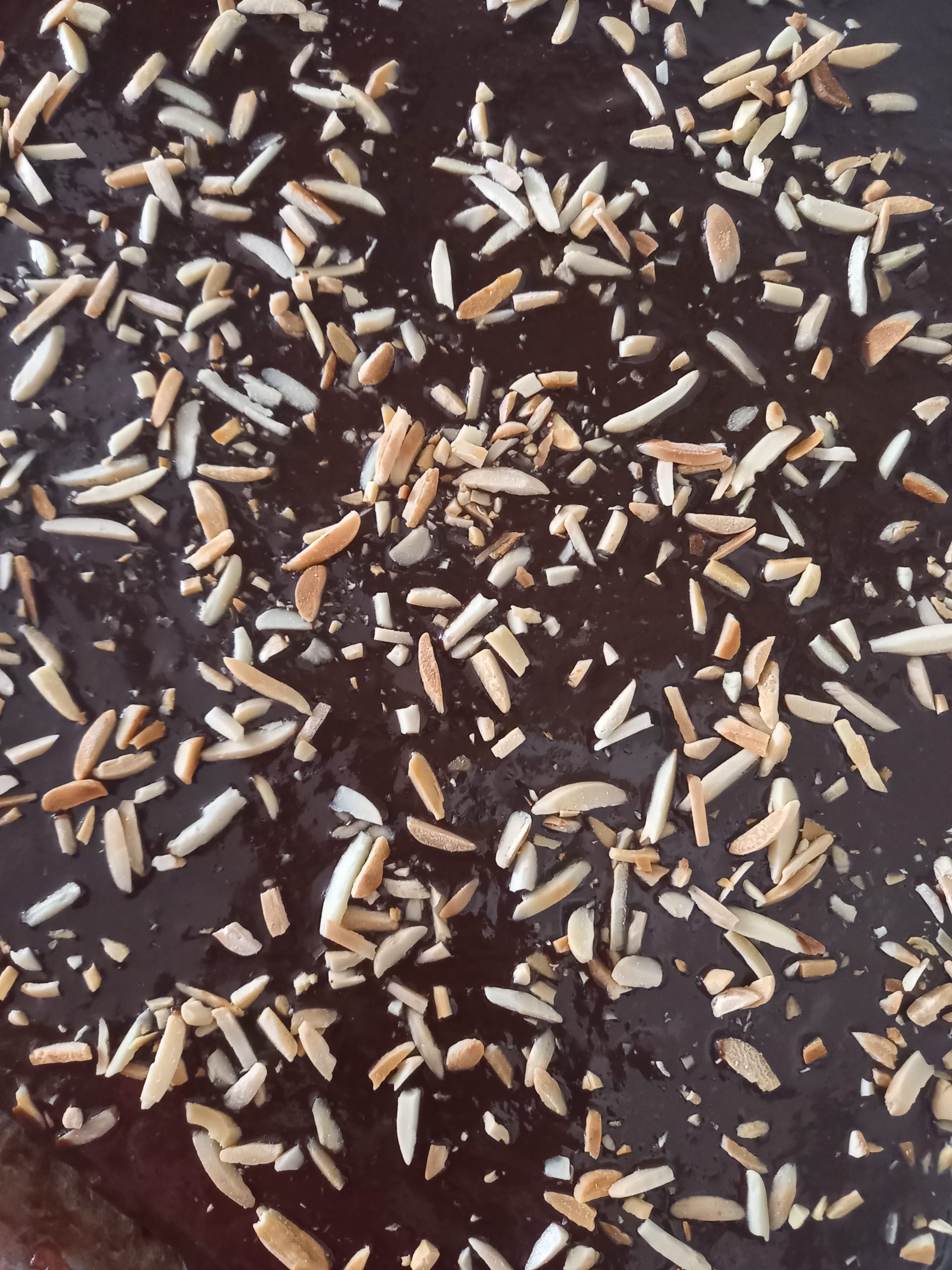 - Rozpustíme si v šľahačkovej smotane kocky čokolády a polejeme vrch perníka.