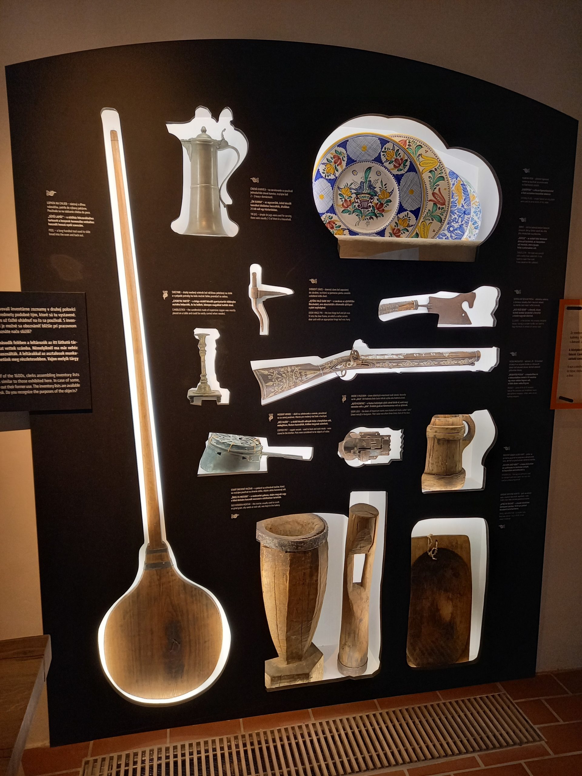 Po premietaní sme pokračovali v expozícii Tri narodenia Rákocziho. Výstava sa nachádza na ploche 1000 m2 a je ozaj rozmanitá. Počas prechádzania jednotlivými expozíciami spoznávate okolnosti rodiny Rákoczi, oboznamujete sa s fungovaním panstva, ale aj novovekou Európou.
